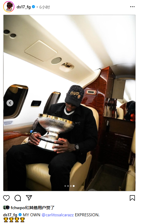 北京时间9月21日,德国男篮队长丹尼斯-施罗德再次更新社媒庆祝夺冠,晒出自己戴着MVP帽并亲吻欧洲杯冠军奖杯以及在机舱内抱着奖杯睡觉的画面,配文写道:我所拥有的(四个奖杯表情)。