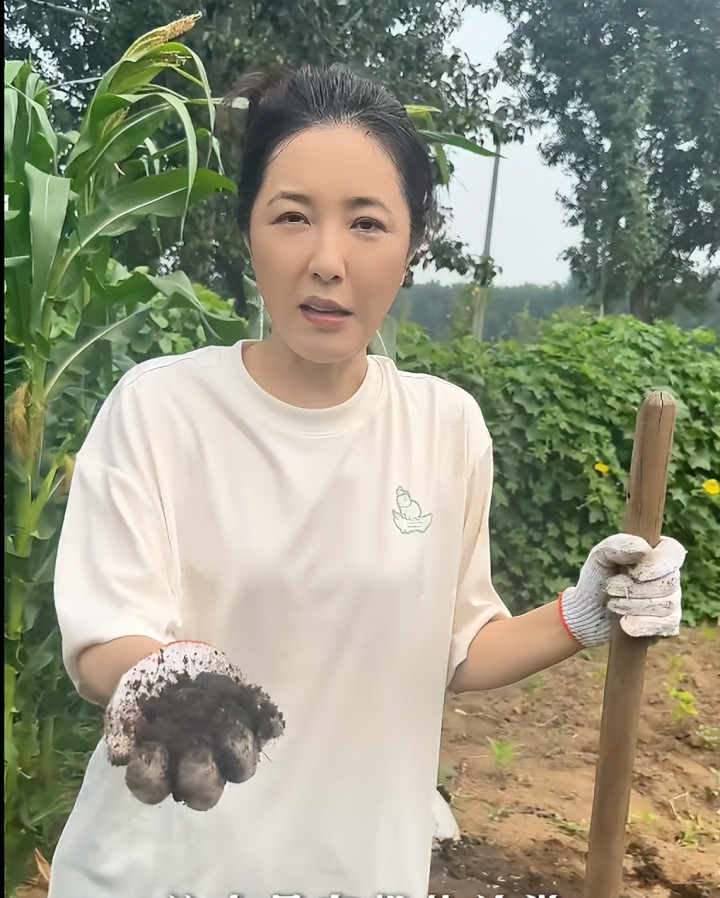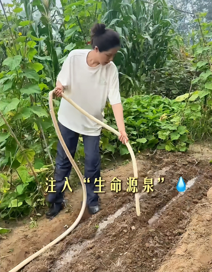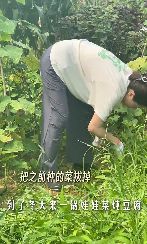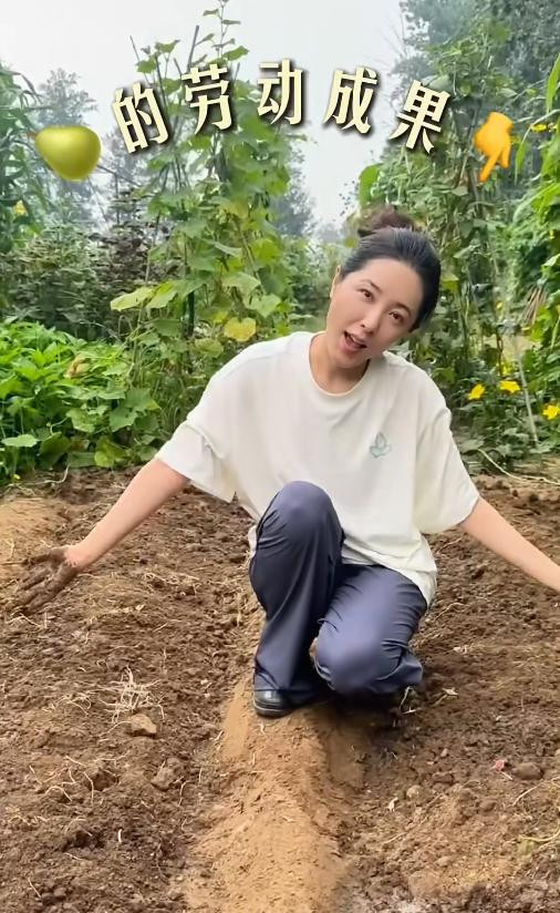 画面中的她看着好真实,其实离开纷纷扰扰的娱乐圈,她闲适的在农村老家种菜也是一种不错的选择。