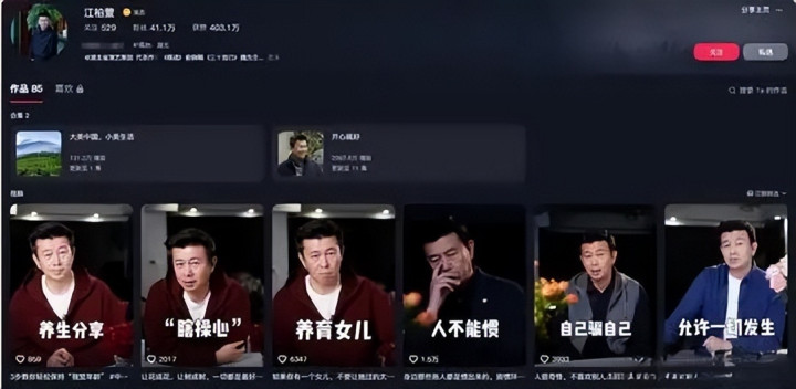 江柏萱靠着分享一些人生哲学和养生之道,成为了一名短视频博主。