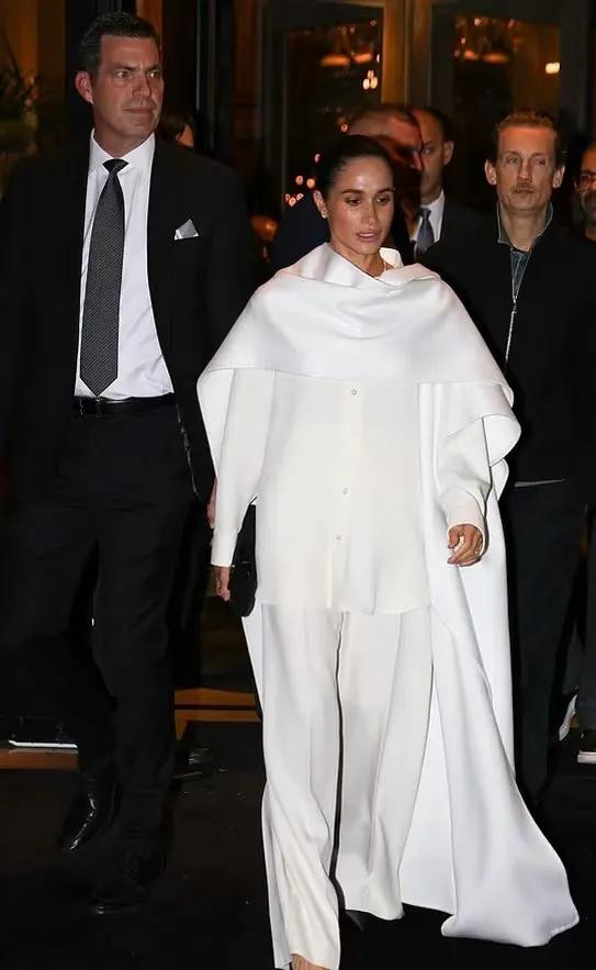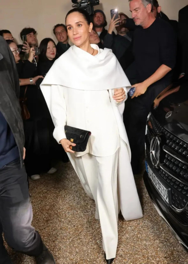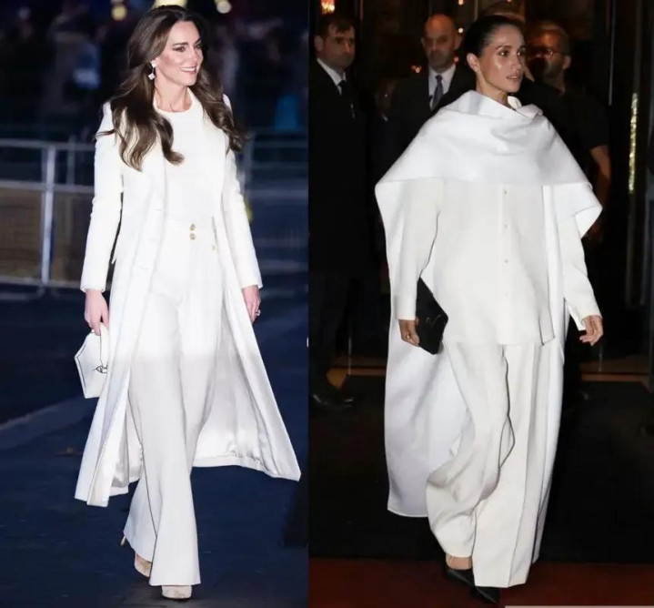 她这身纯白穿搭应该是效仿前不久凯特王妃的穿搭,这对妯娌虽然这几年都没有同框交集,但是梅根会刻意模仿凯特,来为自己增添话题度和流量。凯特王妃的纯白造型很美,干净利落好看,梅根的也很出圈,两个人各有长处和特色。