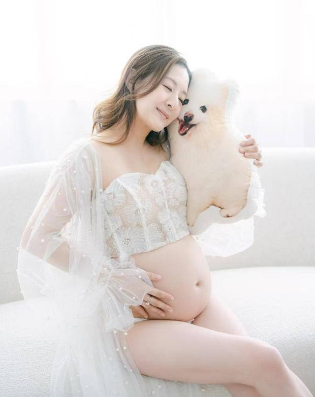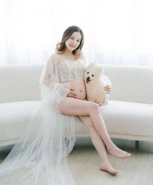从戴梦梦分享的照片中,我们看到她穿上一个蕾丝抹胸上衣,露出了大肚子,给人一种慈母的感觉。