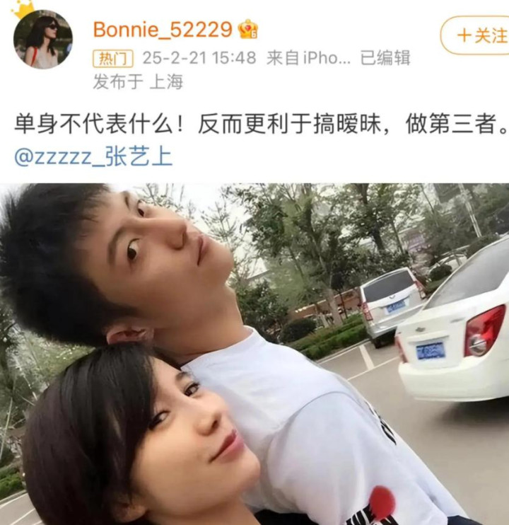 就这样,刚出道不久的张艺上,瞬间被扣上了第三者的帽子,事业也凉凉了。