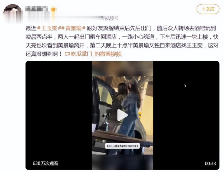 本以为就各回各家了,却不料,王玉雯和黄景瑜竟然坐了一辆车回到了同一个酒店。