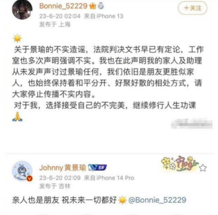 两年后,黄景瑜的工作室才发文承认了和王雨馨的确结过婚,但是现在已经和平分手了。