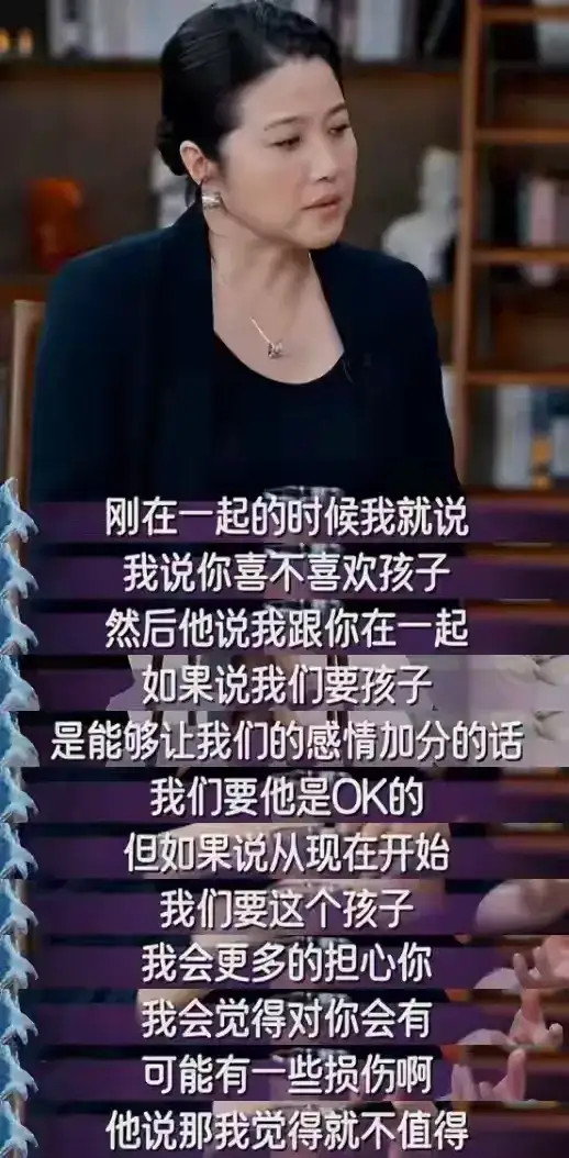 他说:“如果要孩子能让我们的感情加分的话,要是OK的,但若是要孩子对你会有损伤那就不值得。”