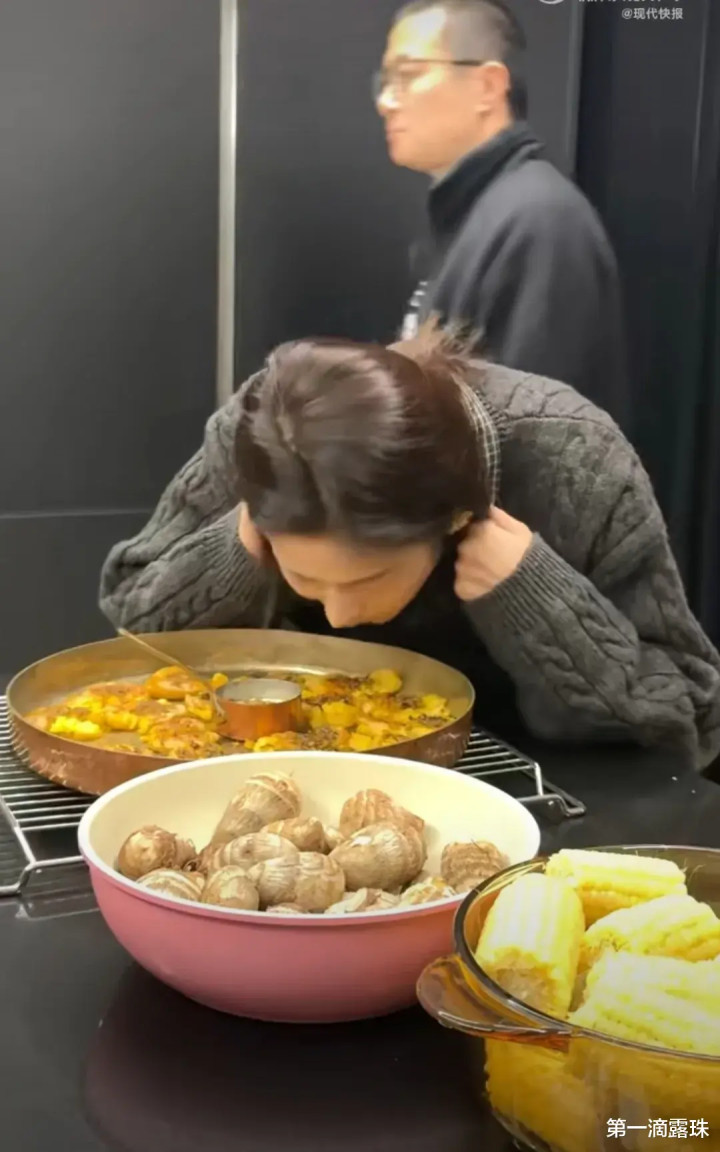 颖儿在梅婷家完全没有了女明星的矜持,她不但趴在美食上狠狠地吸鼻子闻味道,大呼“太香了”,还狂赞“萝卜汤绝了”,连喝三碗还配着红酒,嘴里不停念叨“梅姐姐夫手艺太好了”。